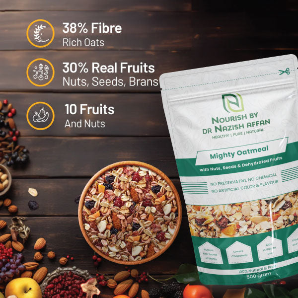 OATMEAL with Nuts & SeedsStart your day with a wholesome, nourishing meal thatâs as good for your body as it is for your taste buds. Our oatmeal is made from 100% natural, whole grain oats, packed with fiber, protein, and essential nutrients to keep you energized and satisfied throughout the day.